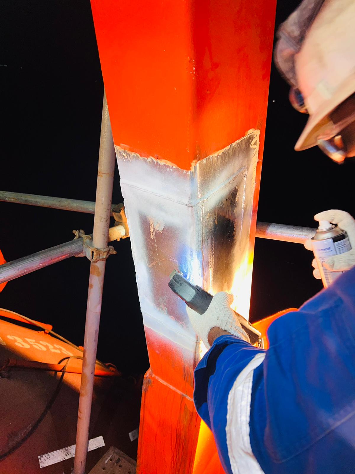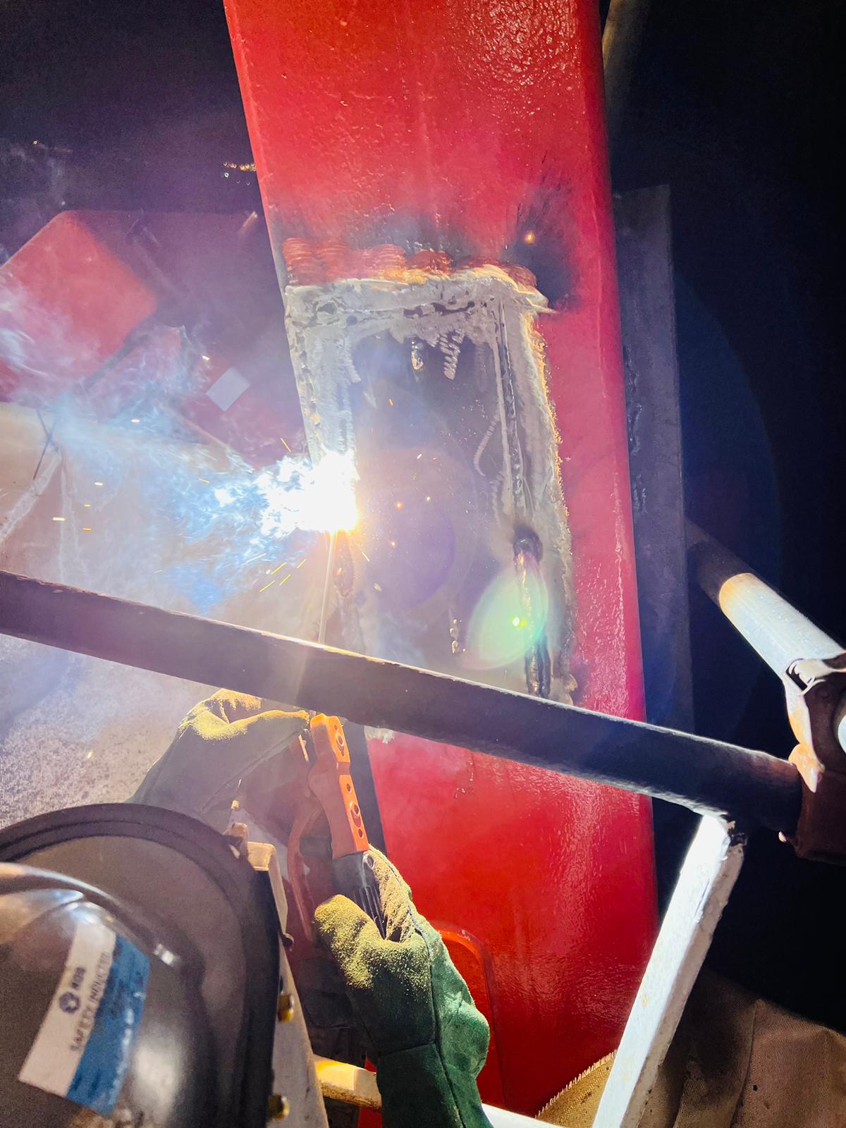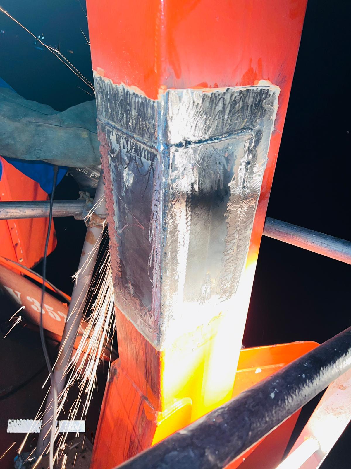 To provide class approved MPI/Welder/lifeboat team onboard vessel. In present of class surveyor carried out lifeboat davit partial arm plate chop/ repair & welding, than proceed with MPI testing and load testing.