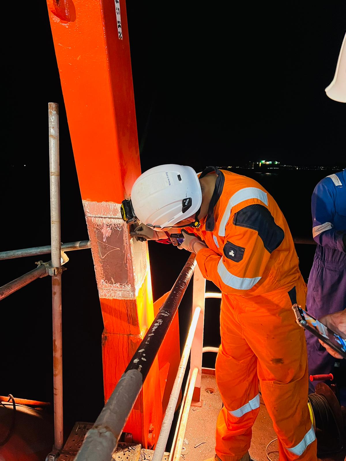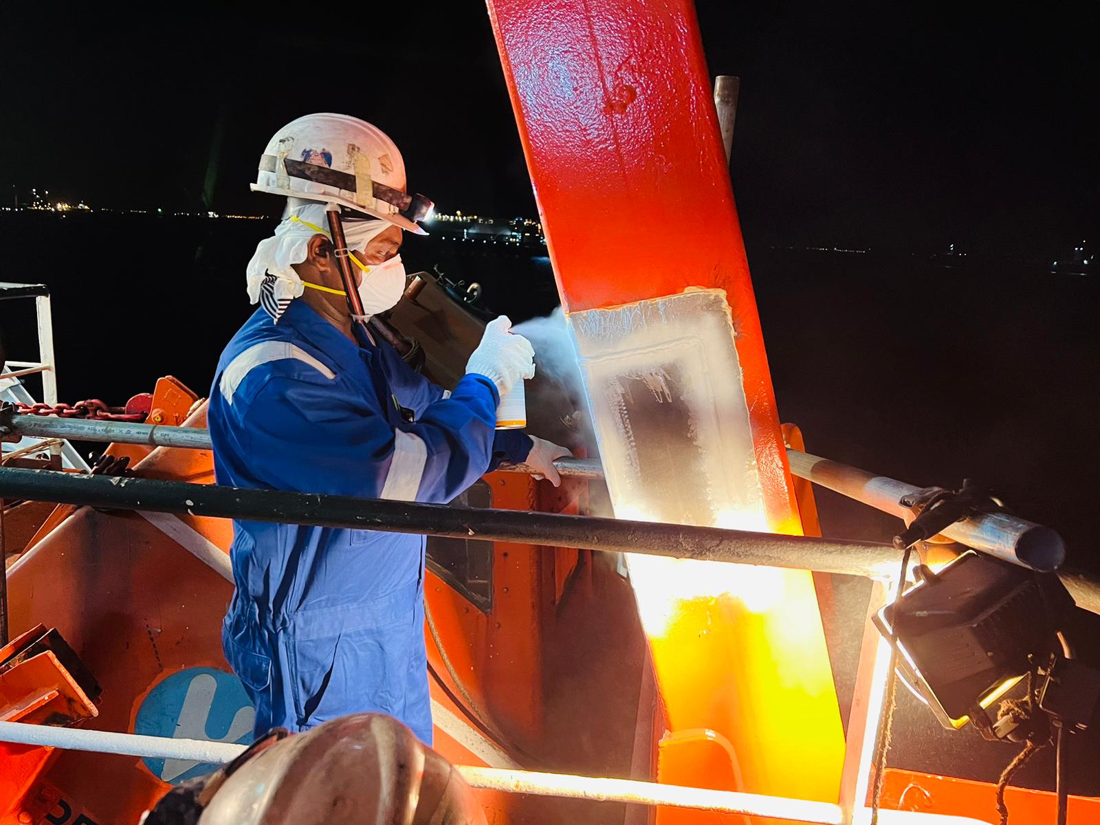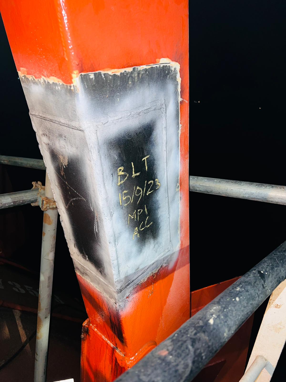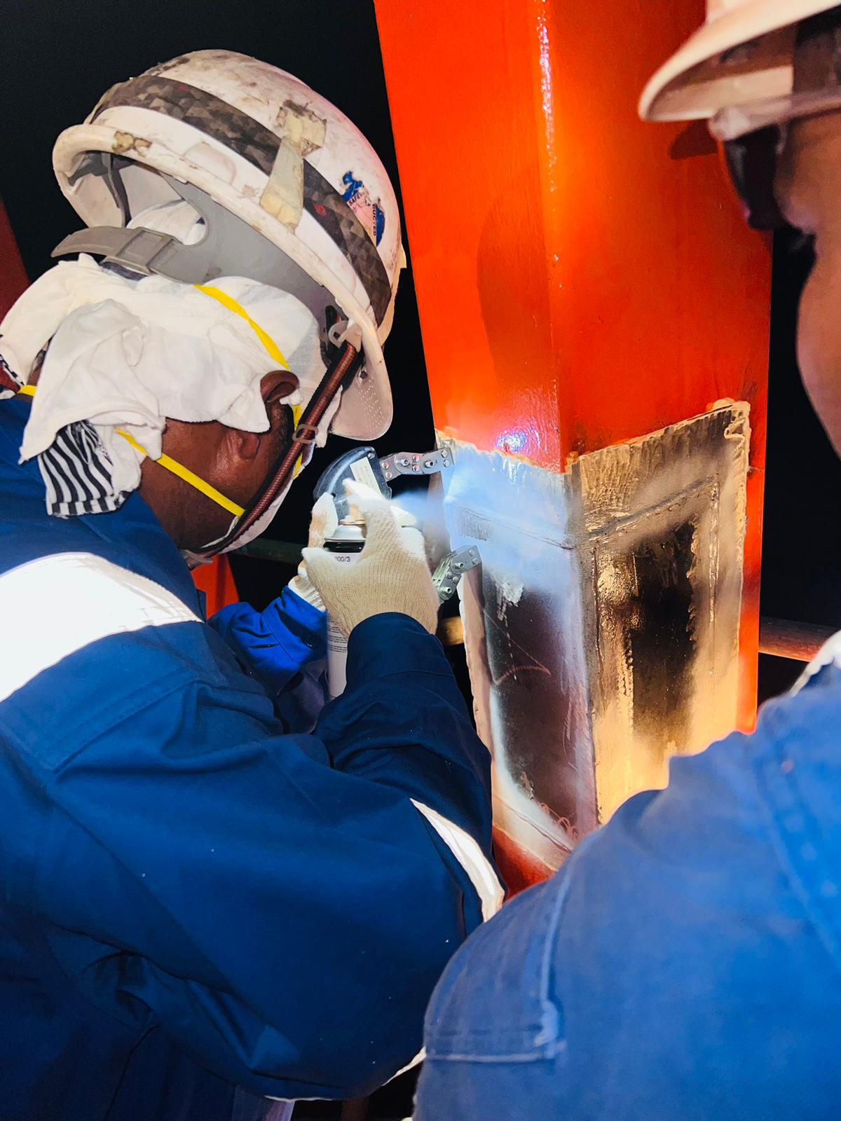 To provide class approved MPI/Welder/lifeboat team onboard vessel. In present of class surveyor carried out lifeboat davit partial arm plate chop/ repair & welding, than proceed with MPI testing and load testing.