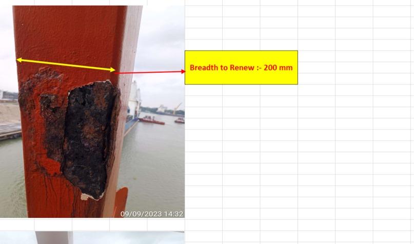 Free Fall Life Boat davit arm found corroded, carry out partial chop, renewal of plate & load testing.