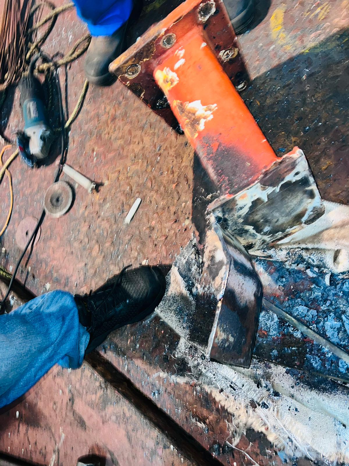 Carried out lifeboat davit stbd side plate, chop partial, removal & renewal work.